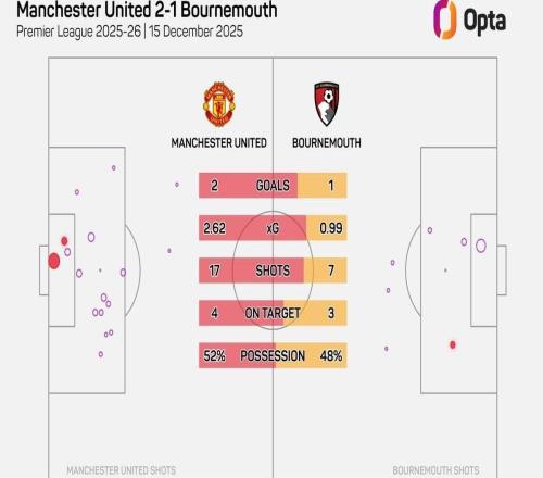 曼联vs伯恩茅斯半场射门24次,为本赛季英超射门最多的上半场