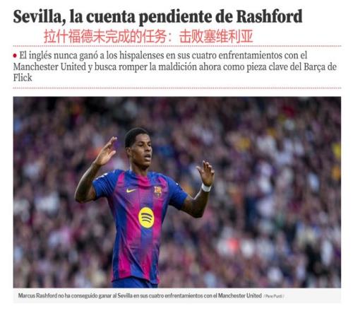 《世界体育报》统计,巴萨本赛季在欧冠、西甲一共打进24球,拉什福德2球5助,直接参与29%的进球。与纽卡的欧冠,拉什福德用梅开二度证明自己的实力;在西甲,拉什福德给拉菲尼亚、奥尔莫、阿劳霍、孔德送助攻。租借加盟巴萨1年,拉什福德的目标是参与30-40球。与塞维利亚一役,拉什福德期待打进西甲第1球、复仇宿敌。