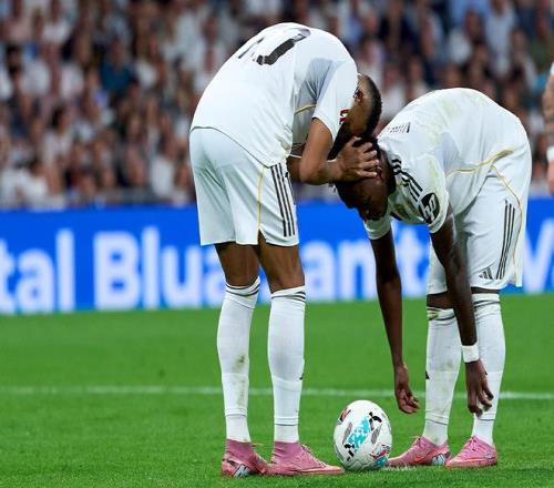雷速体育10月5报道 本轮西甲比赛,皇家马德里在主场以3比1击败比利亚雷亚尔,延续了赛季初的强劲状态。比赛中,维尼修斯贡献两粒进球,其中一球来自点球,另一位进球功臣是姆巴佩。