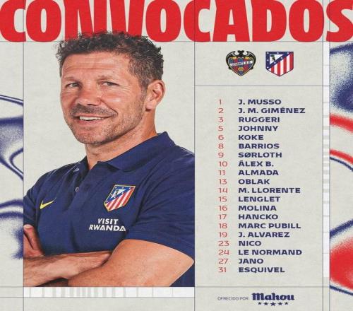 马竞客战莱万特大名单: