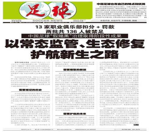 面对当前中国足球欣欣向荣的局面,这条来之不易的新生之路需要更全面的、更坚定的保驾护航。一方面,常态化的司法监管势在必行且始终保持高压态势,唯有常态化的司法监管才可以真正避免塌方式腐败和塌方式假赌黑;另一方面,行业监管也需要真正确立;更重要的是行业治理层面优化体制机制,修复足球生态,构建良好的足球文化,同时在治理过程中确保公开透明。如此内外兼修,标本兼治,才能走出“假赌黑”现象无限循环的怪圈。