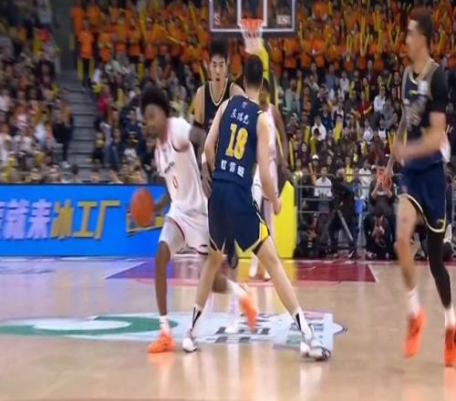 首节比赛打到4分钟左右,古德温持球推进遭到了广东小将陈家政的紧逼防守犯规。